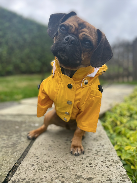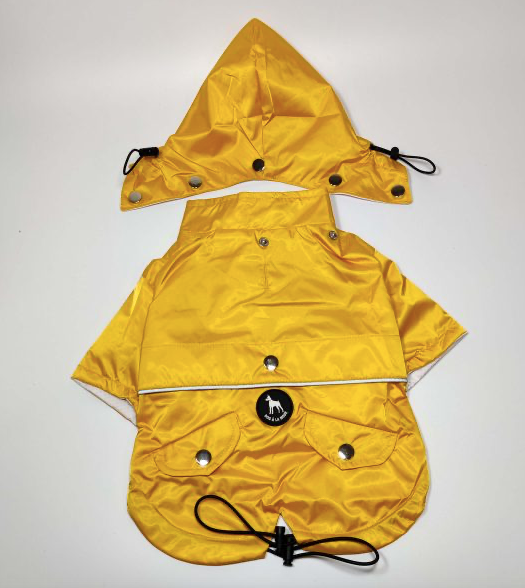 The Stradbally Raincoat is the most stylish, yet practical, wardrobe essential for rainy Irish winter (and summer) days. This fully weatherproof yellow dog raincoat will keep your dogs warm and dry. Easily detach or reattach the raincoat hood, with an easy-to-remove detachable draw-string hood.